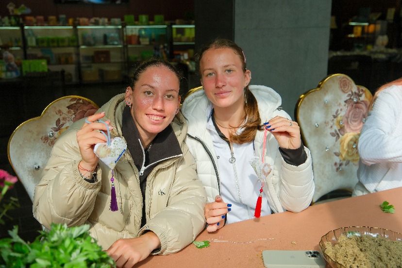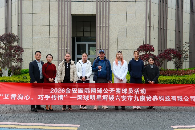 3月31日,2026金安国际网球公开赛“艾香润心,巧手传情”主题活动在六安市九康怡养科技有限公司温情启幕。王美玲、党一鸣、佐洛塔廖娃姐妹等中外网球健儿齐聚一堂,在赛事间隙沉浸式体验 “北艾之王”的独特魅力,以非遗手作传递安康,让体育活力与传统文化双向交融。